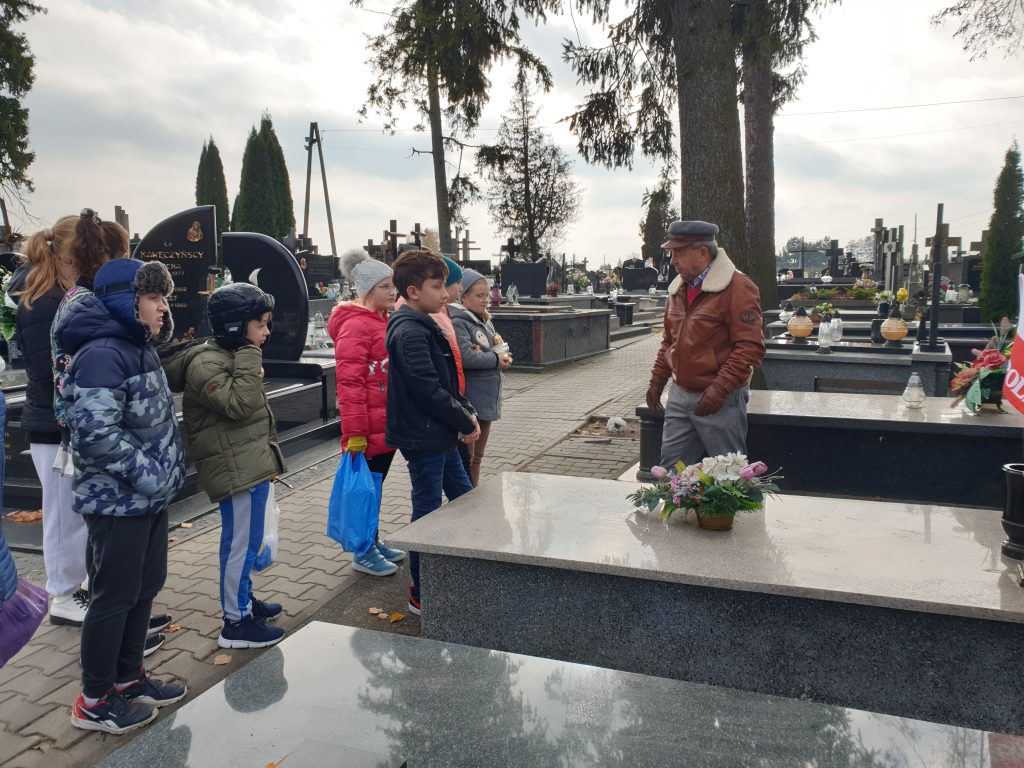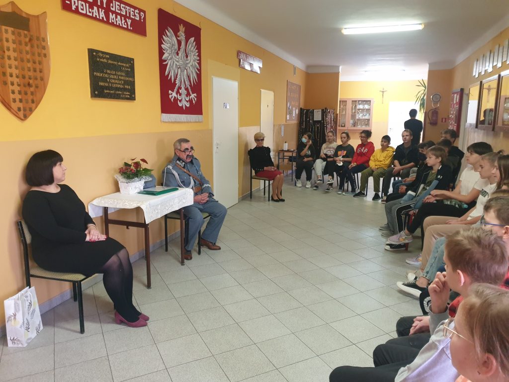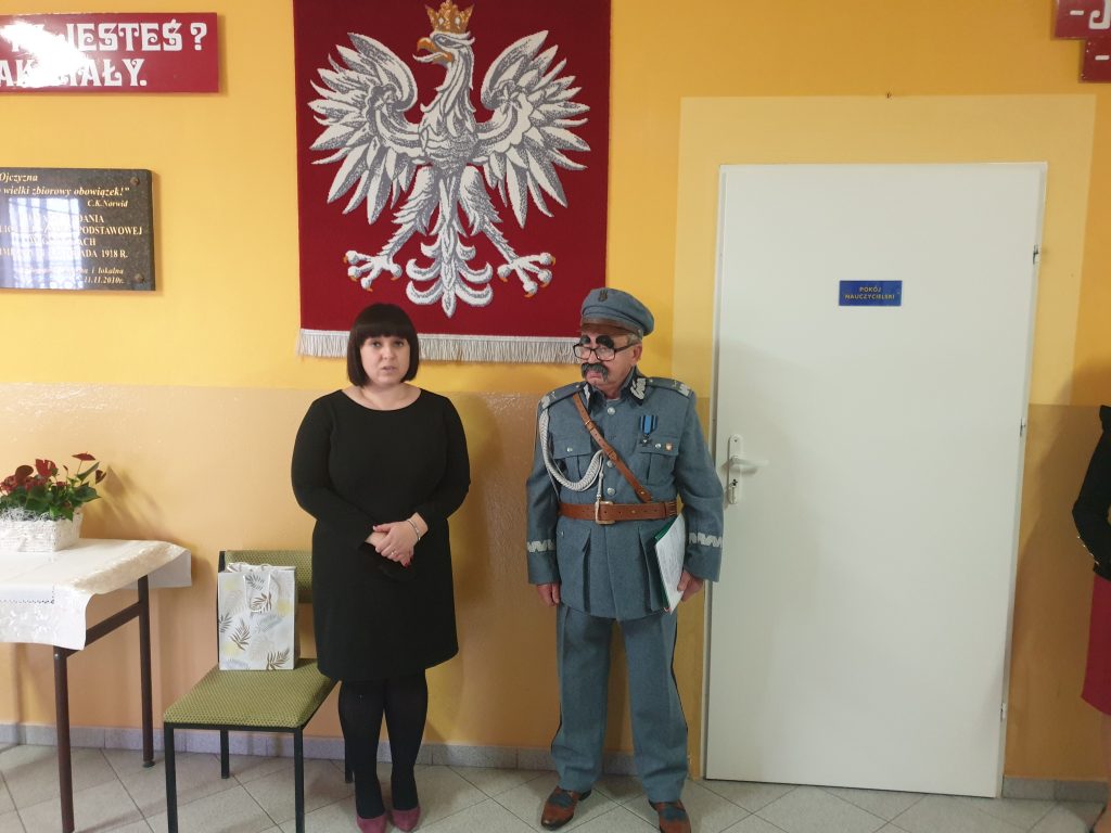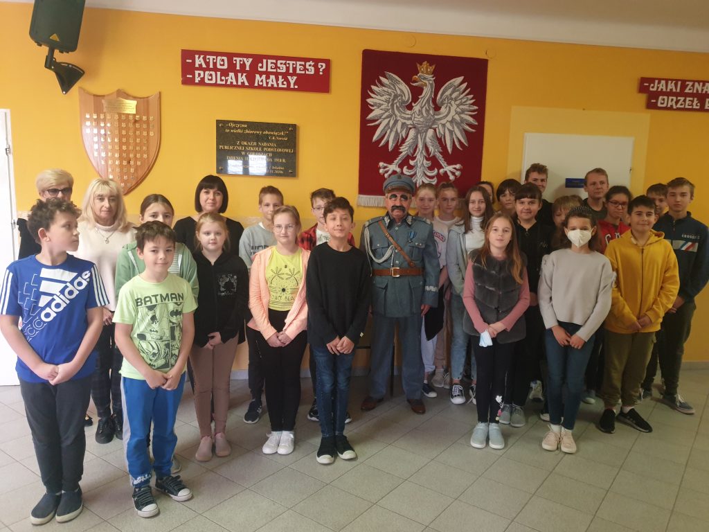 Żywa lekcja historii28 października 2021r. uczniowie klas IV-VIII Publicznej Szkoły Podstawowej im. 11 Listopada 1918r. uczestniczyli w nietypowej lekcji historii z udziałem Marszałka Józefa Piłsudskiego, w którego wcielił się znany lokalny patriota i działacz społeczny Pan Włodzimierz Franciszek Malczewski.W bardzo interesujący sposób przybliżył młodzieży szkolnej sylwetki lokalnych bohaterów zasłużonych dla kraju i małej Ojczyzny. Uczestnicy spotkania mogli przenieść się w odległe czasy, począwszy od Polski pod zaborami po II wojnę światową. Wzruszające i dramatyczne losy powstańców i bohaterów wojennych były okazją do wykreowania wzorca współczesnego patrioty. Pamiątkowe fotografie uczniów z naszym honorowym gościem zakończyły spotkanie. Natomiast wspólny wyjazd na cmentarz parafialny celem zapalenia zniczy na grobach lokalnych patriotów i zmarłych nauczycieli, potwierdziły aktywny udział w akcji „Szkoła pamięta”. Dyrektor szkoły, nauczyciele i społeczność szkolna składają Panu Włodzimierzowi Malczewskiemu gorące podziękowania za żywą lekcję kształtowania patriotyzmu, wrażliwości oraz budowania mostu między pokoleniami.