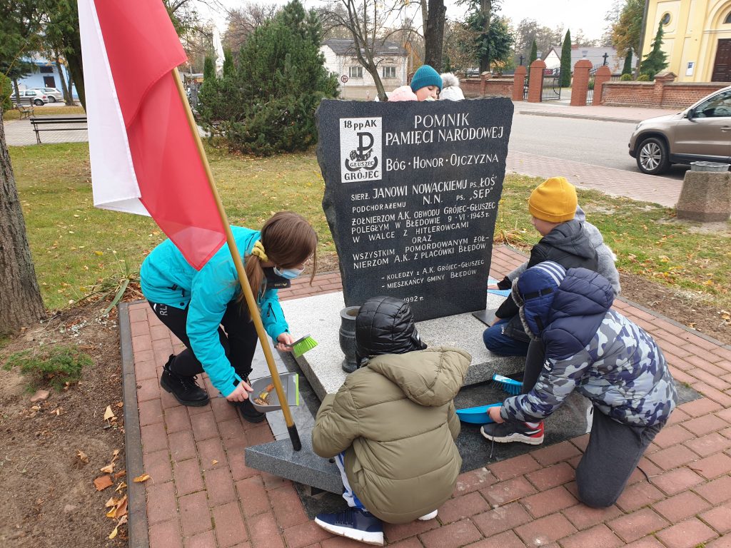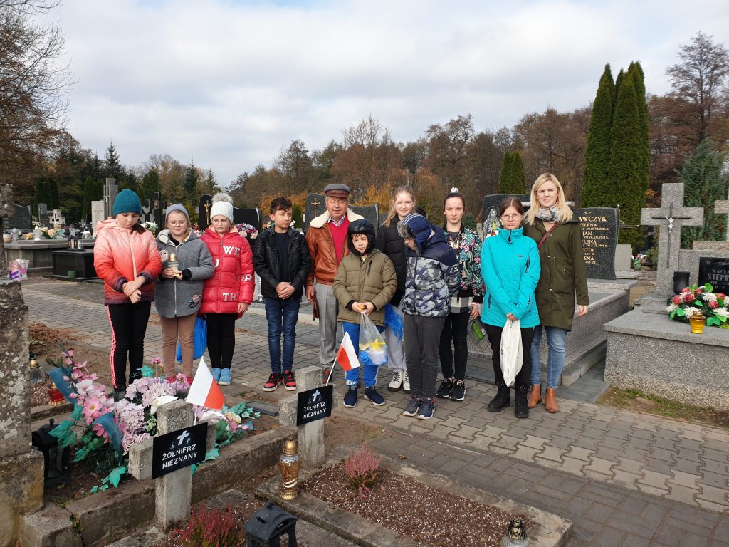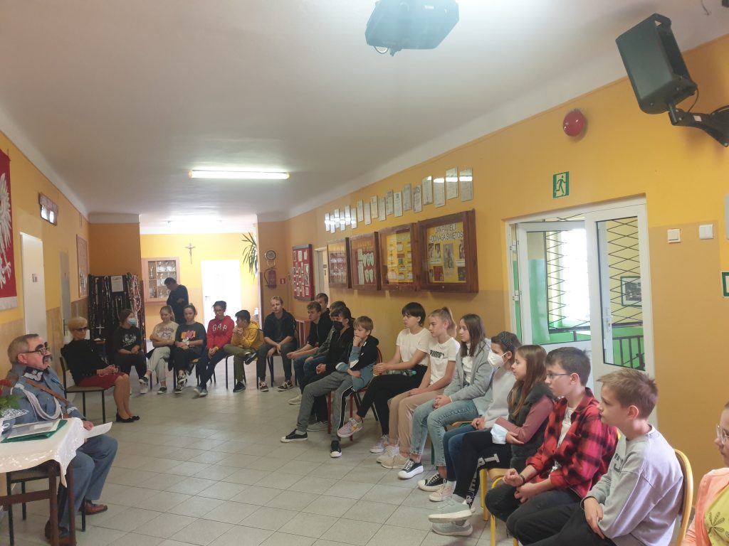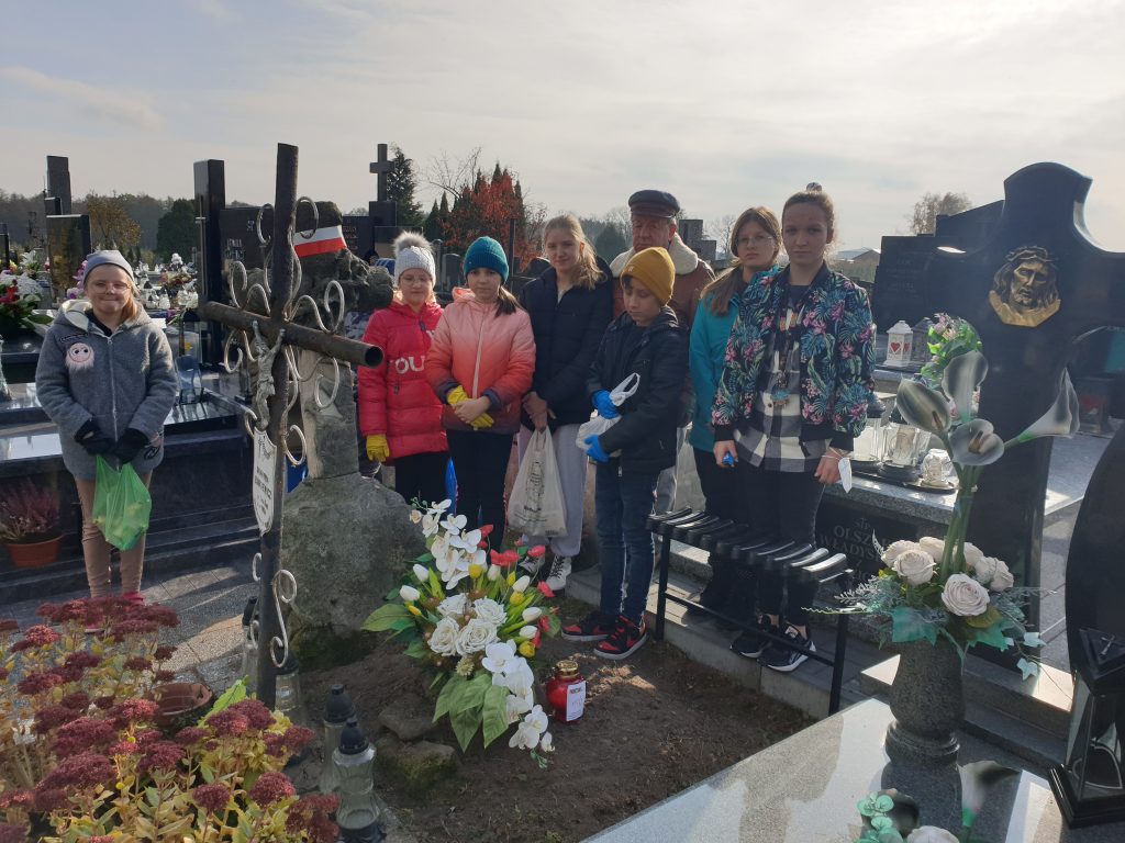Żywa lekcja historii28 października 2021r. uczniowie klas IV-VIII Publicznej Szkoły Podstawowej im. 11 Listopada 1918r. uczestniczyli w nietypowej lekcji historii z udziałem Marszałka Józefa Piłsudskiego, w którego wcielił się znany lokalny patriota i działacz społeczny Pan Włodzimierz Franciszek Malczewski.W bardzo interesujący sposób przybliżył młodzieży szkolnej sylwetki lokalnych bohaterów zasłużonych dla kraju i małej Ojczyzny. Uczestnicy spotkania mogli przenieść się w odległe czasy, począwszy od Polski pod zaborami po II wojnę światową. Wzruszające i dramatyczne losy powstańców i bohaterów wojennych były okazją do wykreowania wzorca współczesnego patrioty. Pamiątkowe fotografie uczniów z naszym honorowym gościem zakończyły spotkanie. Natomiast wspólny wyjazd na cmentarz parafialny celem zapalenia zniczy na grobach lokalnych patriotów i zmarłych nauczycieli, potwierdziły aktywny udział w akcji „Szkoła pamięta”. Dyrektor szkoły, nauczyciele i społeczność szkolna składają Panu Włodzimierzowi Malczewskiemu gorące podziękowania za żywą lekcję kształtowania patriotyzmu, wrażliwości oraz budowania mostu między pokoleniami.