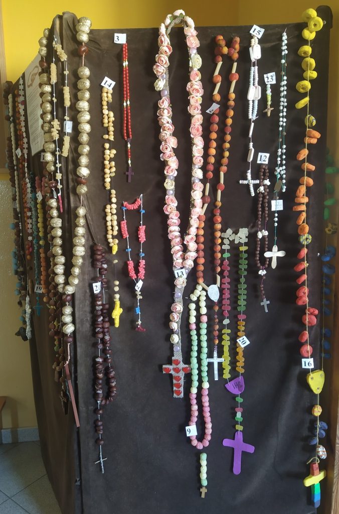 Miesiąc październik był szczególnym czasem. Zwracaliśmy się każdego dnia do Maryi odmawiając Różaniec. W związku z tym w naszej szkole został zorganizowany konkurs na “Najpiękniejszy Różaniec” wykonany dowolną techniką, z dowolnych materiałów przez uczniów naszej szkoły i ich rodziny.