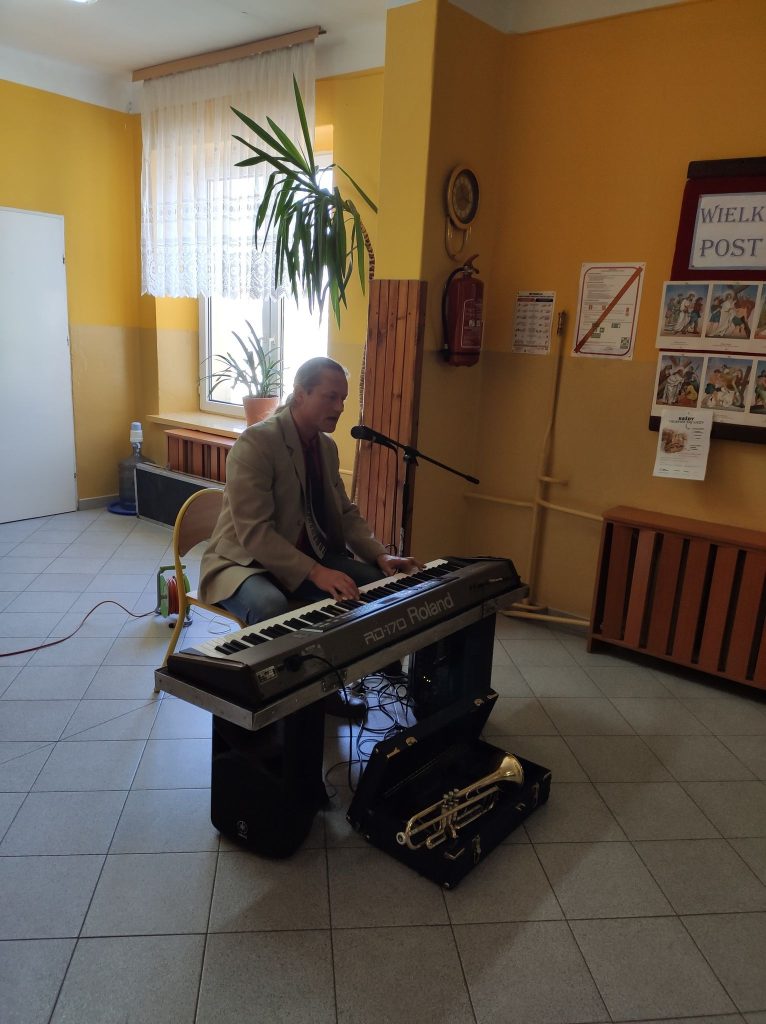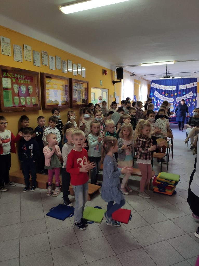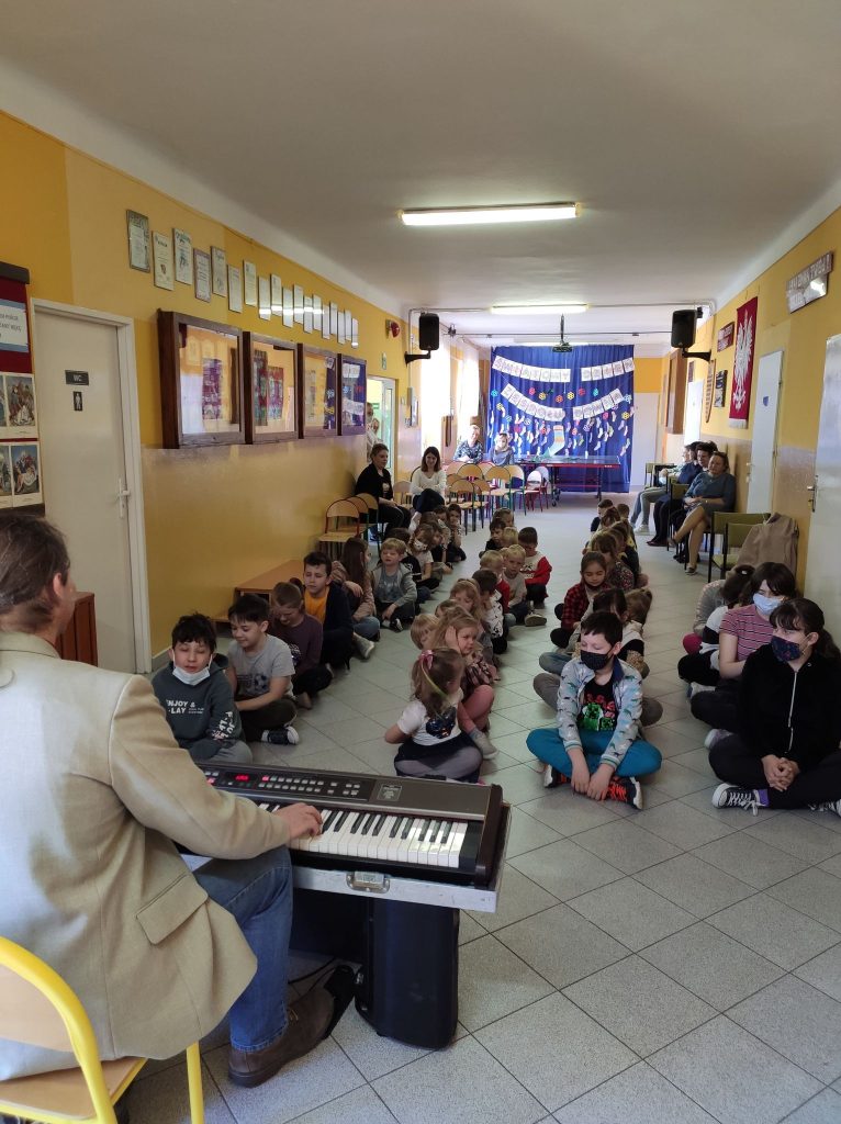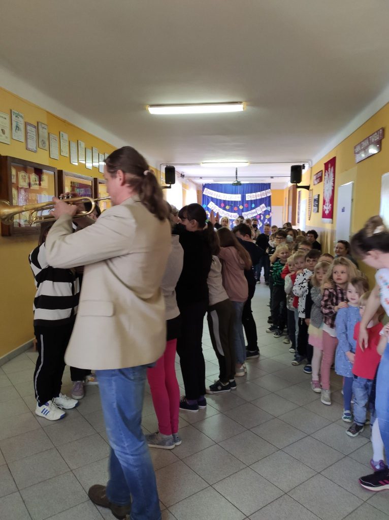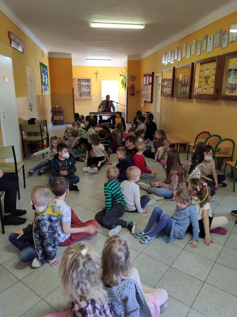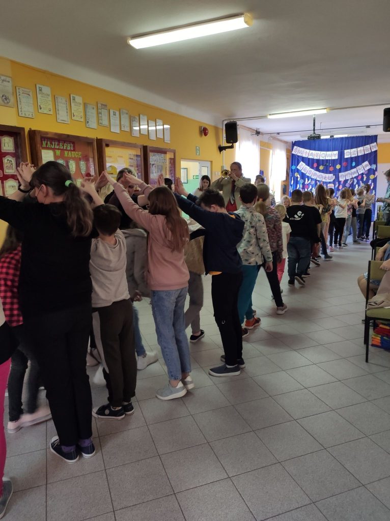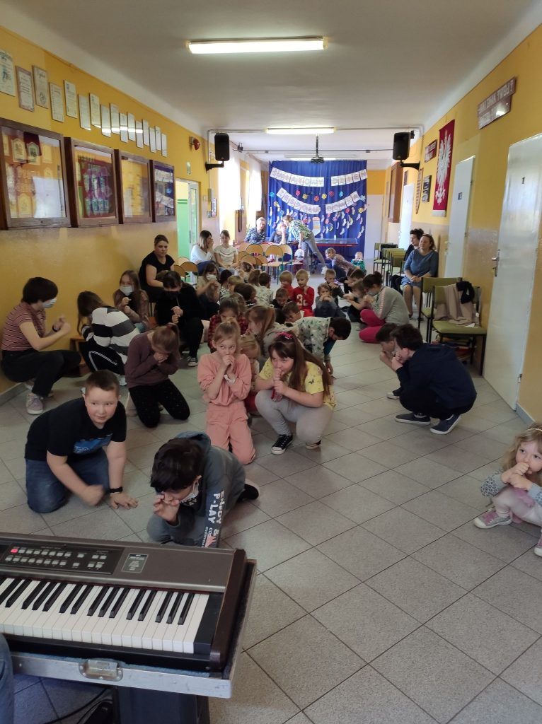 Kolejny raz gościliśmy w naszej szkole podróżującą filharmonię Largo. Pan Marcin Jóźwik razem ze wszystkimi dziećmi muzycznie witał wiosnę. Artysta zaproponował nie tylko słuchanie muzyki, ale również wiele zabaw rytmicznych i ruchowych. Było to aktywne i twórcze słuchanie muzyki. Całe spotkanie upłynęło w radosnej atmosferze.![]()
