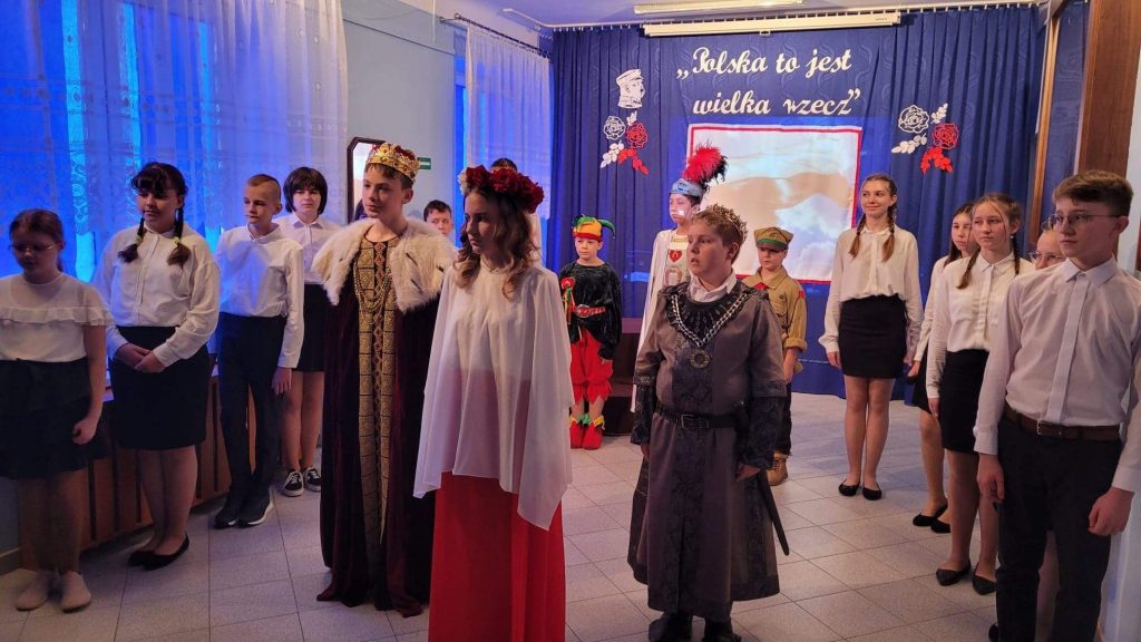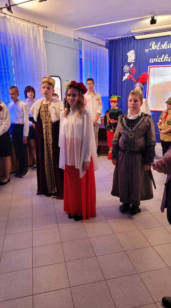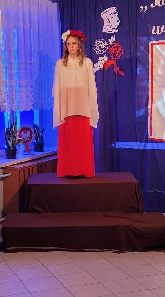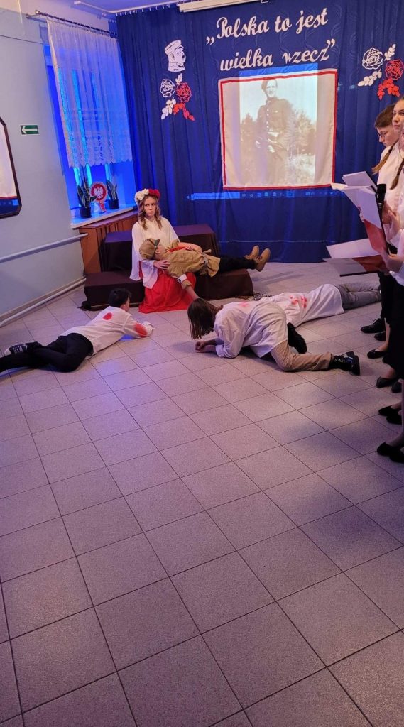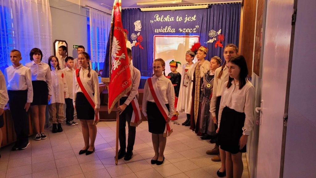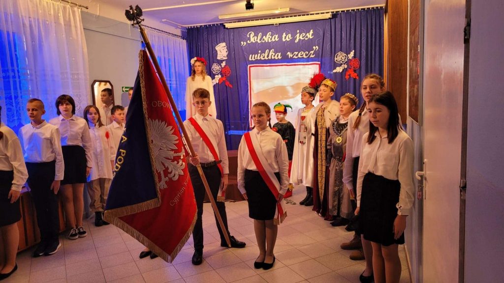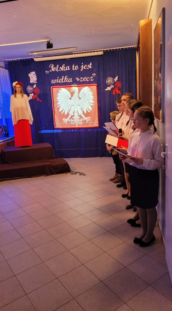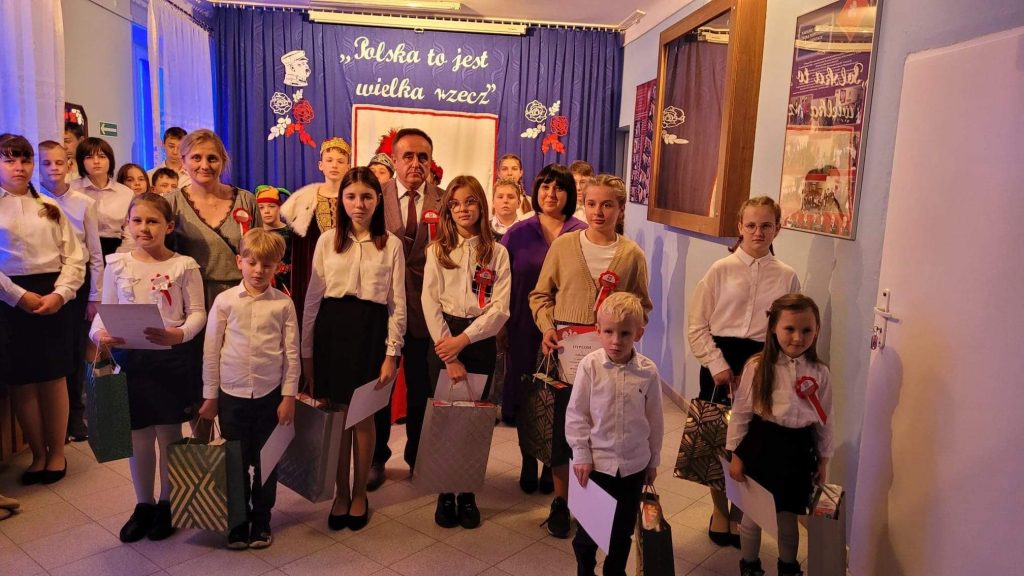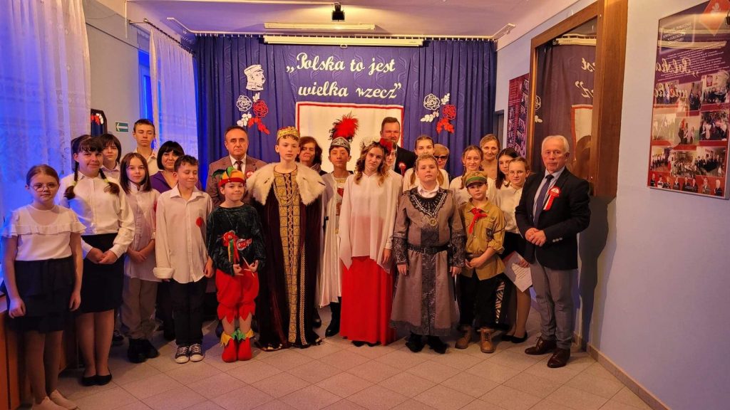 Pod takim hasłem 15.11.2022r. w PSP im. 11 Listopada w Gołoszach odbyła się uroczysta akademia poświęcona 104 rocznicy odzyskania przez Polskę niepodległości. Uczniowie klas V, VII i VIII pod kierunkiem A. Sikorskiej, G. Czarneckiej i K. Jankowskiej w formie patriotycznej lekcji otwartej przybliżyli społeczności szkolnej i zaproszonym gościom skomplikowaną historię naszej Ojczyzny. W swoim wystąpieniu odwołali się do patriotycznych pieśni, tekstów literackich i okolicznościowych prezentacji multimedialnych obrazujących dzieje Polski. Młodzi aktorzy swoim twórczym uczestnictwem w uroczystości rozbudzali szacunek do tradycji, symboli narodowych, pogłębiali poczucie przynależności narodowej, a także uświadamiali sobie i zebranym, że wolność nie jest darem danym nam raz na zawsze. Uroczystość przebiegała w podniosłym, patriotycznym nastroju, który tworzyły nie tylko żywe słowo, ruch sceniczny, materiał dźwiękowy i filmowy, ale także sceneria i historyczne stroje uczniów. Dyrektor szkoły Agnieszka Sikorska gorąco podziękowała uczniom biorącym udział w tak ważnym wydarzeniu – Narodowym Święcie Niepodległości – za zaangażowanie i ich patriotyczne postawy oraz przybyłym na uroczystość gościom w osobach:- Mirosław Jakubczak- wójt Gminy Błędów,- Jacek Adamski- sekretarz Gminy Błędów,- Andrzej Kępka- radny Gminy Błędów,- Anna Górecka- przewodnicząca Rady Rodziców,- Halina Sitarek – Przyjaciel Szkoły. Pani dyrektor złożyła także wyrazy wdzięczności Rodzicom uczniów klas IV i VII za przygotowanie słodkiego poczęstunku dla całej społeczności szkolnej. Gromkie brawa oraz ciepłe i budujące słowa Pana wójta były najlepszym dowodem na to, że warto czcić Patrona Szkoły i oddawać szacunek wszystkim patriotom, którzy wywalczyli nam niepodległość. Na zakończenie uroczystości odbyło się podsumowanie gminnego konkursu plastycznego „Gdy myślę, Polska – Najpiękniejszy Kotylion Narodowy” zorganizowanego przez Katarzynę Jankowską.