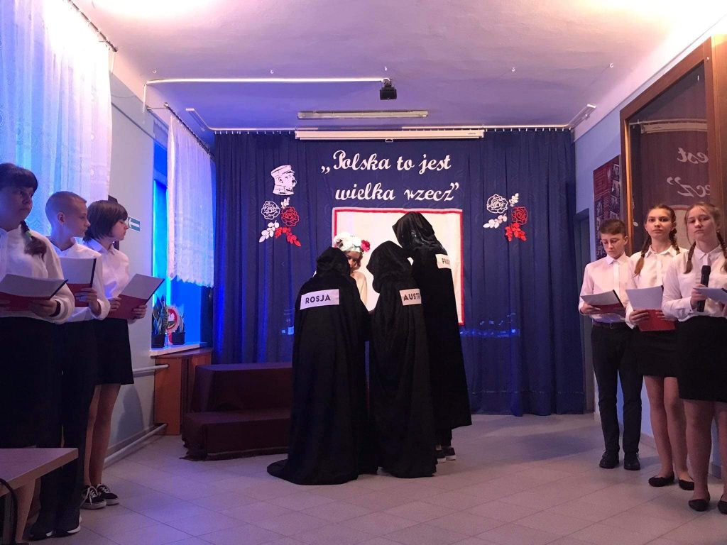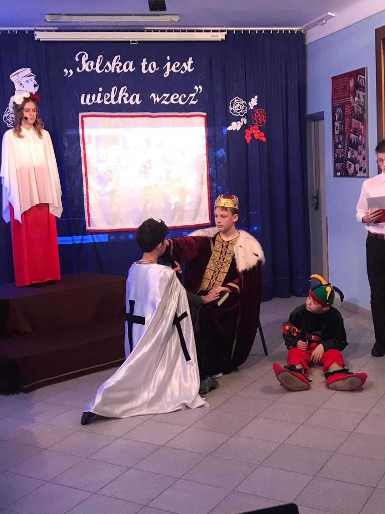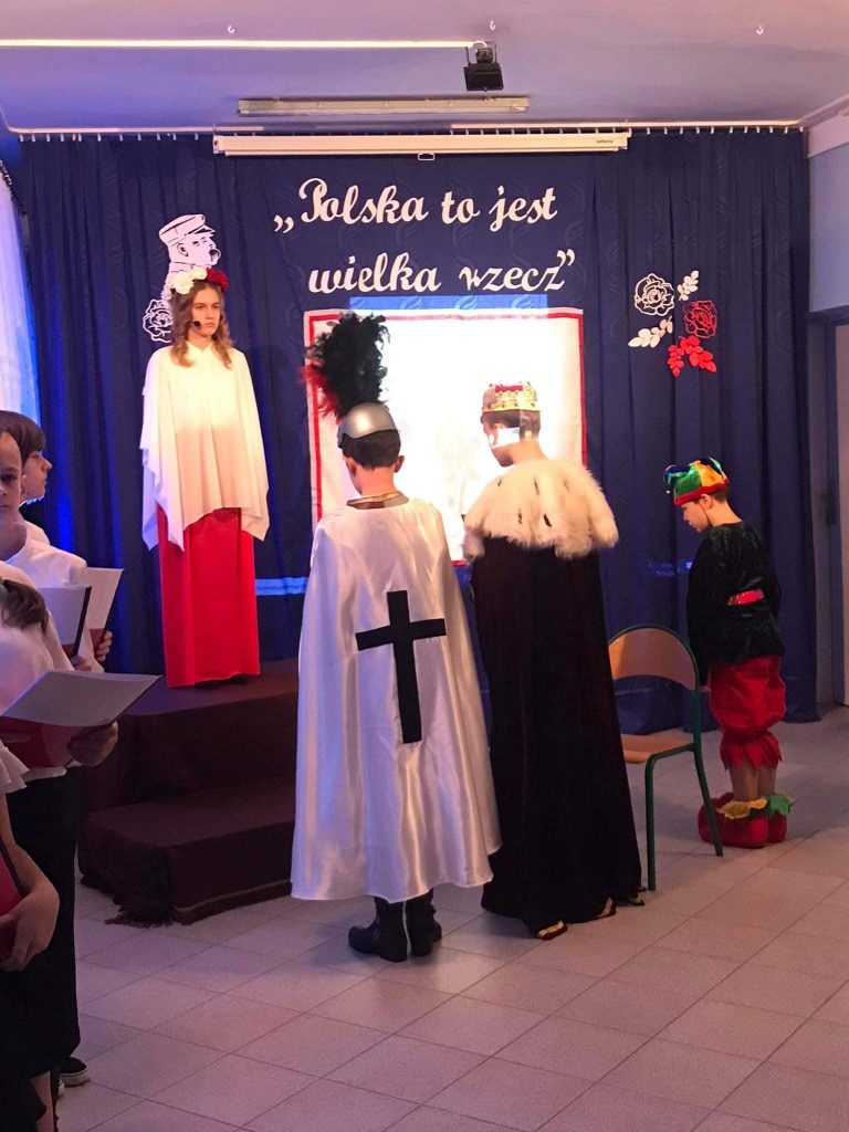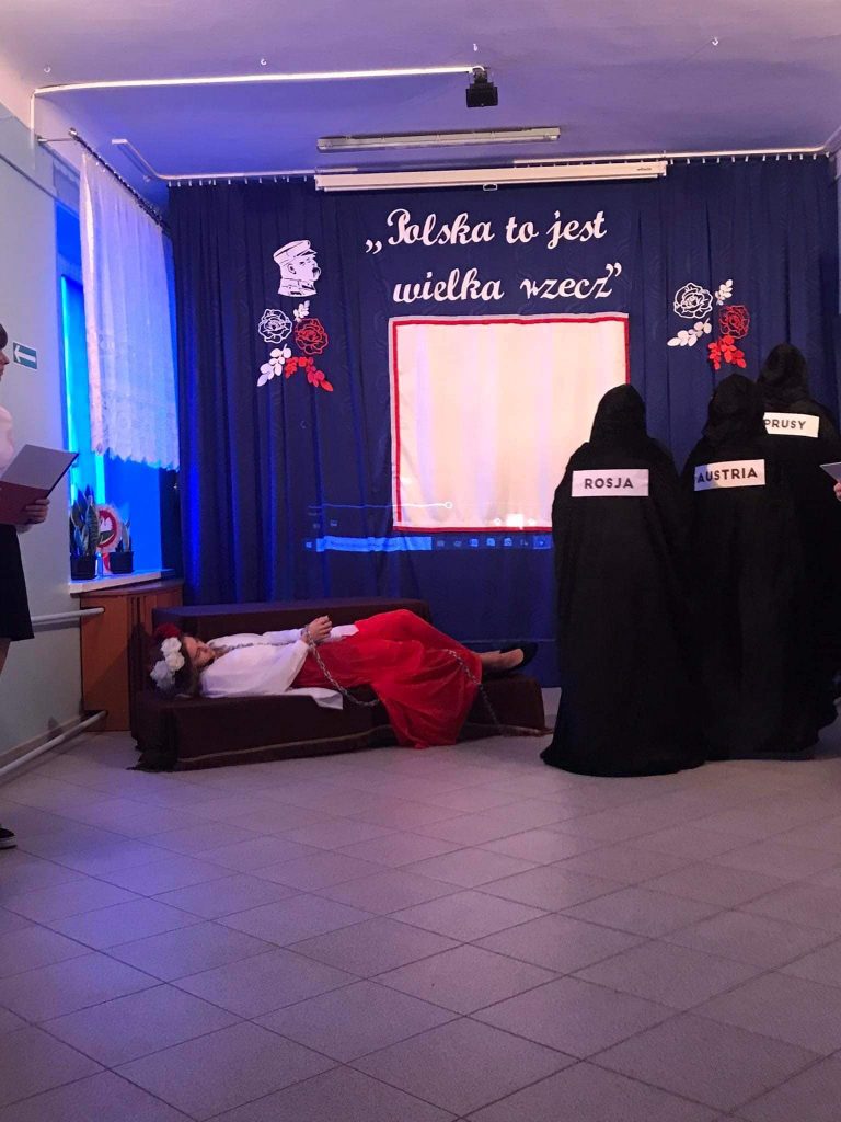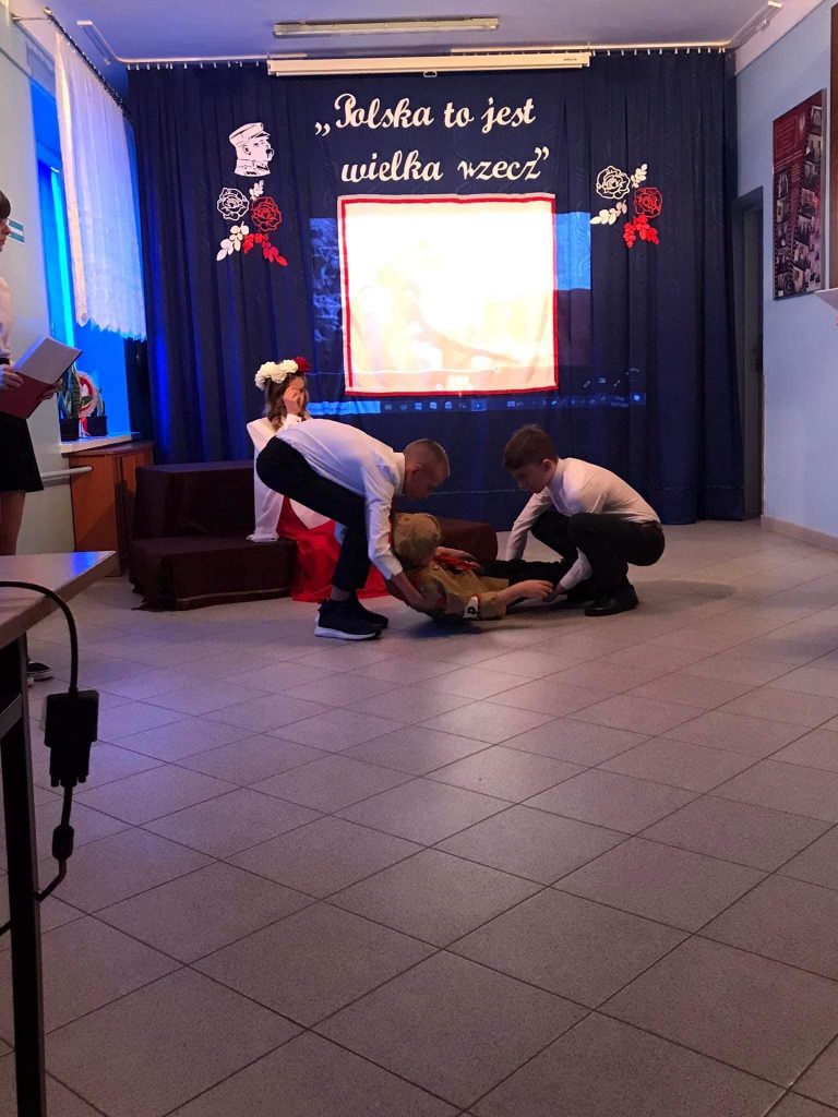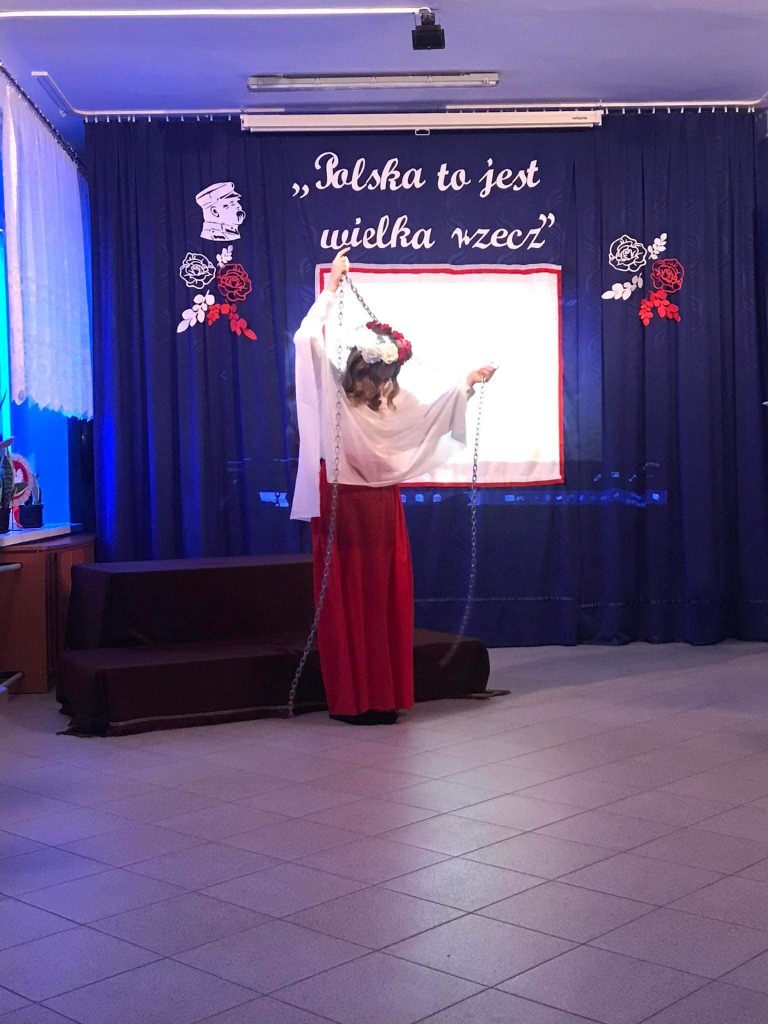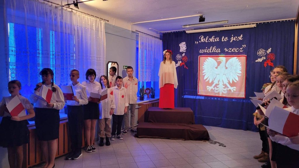 Pod takim hasłem 15.11.2022r. w PSP im. 11 Listopada w Gołoszach odbyła się uroczysta akademia poświęcona 104 rocznicy odzyskania przez Polskę niepodległości. Uczniowie klas V, VII i VIII pod kierunkiem A. Sikorskiej, G. Czarneckiej i K. Jankowskiej w formie patriotycznej lekcji otwartej przybliżyli społeczności szkolnej i zaproszonym gościom skomplikowaną historię naszej Ojczyzny. W swoim wystąpieniu odwołali się do patriotycznych pieśni, tekstów literackich i okolicznościowych prezentacji multimedialnych obrazujących dzieje Polski. Młodzi aktorzy swoim twórczym uczestnictwem w uroczystości rozbudzali szacunek do tradycji, symboli narodowych, pogłębiali poczucie przynależności narodowej, a także uświadamiali sobie i zebranym, że wolność nie jest darem danym nam raz na zawsze. Uroczystość przebiegała w podniosłym, patriotycznym nastroju, który tworzyły nie tylko żywe słowo, ruch sceniczny, materiał dźwiękowy i filmowy, ale także sceneria i historyczne stroje uczniów. Dyrektor szkoły Agnieszka Sikorska gorąco podziękowała uczniom biorącym udział w tak ważnym wydarzeniu – Narodowym Święcie Niepodległości – za zaangażowanie i ich patriotyczne postawy oraz przybyłym na uroczystość gościom w osobach:- Mirosław Jakubczak- wójt Gminy Błędów,- Jacek Adamski- sekretarz Gminy Błędów,- Andrzej Kępka- radny Gminy Błędów,- Anna Górecka- przewodnicząca Rady Rodziców,- Halina Sitarek – Przyjaciel Szkoły. Pani dyrektor złożyła także wyrazy wdzięczności Rodzicom uczniów klas IV i VII za przygotowanie słodkiego poczęstunku dla całej społeczności szkolnej. Gromkie brawa oraz ciepłe i budujące słowa Pana wójta były najlepszym dowodem na to, że warto czcić Patrona Szkoły i oddawać szacunek wszystkim patriotom, którzy wywalczyli nam niepodległość. Na zakończenie uroczystości odbyło się podsumowanie gminnego konkursu plastycznego „Gdy myślę, Polska – Najpiękniejszy Kotylion Narodowy” zorganizowanego przez Katarzynę Jankowską.