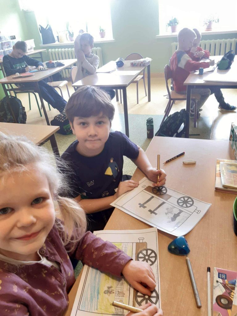 ☁️📚☁️W ramach II modułu „Czytam z klasą – lekturki spod chmurki” – Podróże po Europie, uczniowie klasy I wybrali i z rodzicami przeczytali lekturę R. Pisarskiego „O psie, który jeździł koleją” , tym samym udali się w wirtualną podróż do Włoch. Omówiliśmy położenie Włoch oraz miejscowości, w których toczy sie akcja lektury. Zapoznaliśmy się z charakterystycznymi miejscami tego pięknego kraju. Uczniowie wypełnili lekturniki, z rysunkiem głównego bohatera – Lampo.Następnie wykonaliśmy zadanie pt. “Lektura na lince” – każdy uczeń narysował jedno z wydarzeń z lektury i za pomocą spinaczy zawiesiliśmy na lince przygody psa Lampo. Z dostępnych klocków pożyczonych z oddziału przedszkolnego, uczniowie zbudowali makietę sieci kolejowej we Włoszech wraz ze stacjami po których podróżował Lampo. Po szynach zbudowanego toru kolejowego poruszała się lokomotywa wraz z wagonami pod nadzorem motorniczej- Izabeli. Motornicza podczas podróży zwracała uwagę na odpowiednie zachowanie się pasażerów podczas wsiadania i wysiadania na przystankach kolejowych. Na zbudowanej stacji kolejowej Turyn dzieci poznały zasady, które mówią co zrobić, gdy się zgubisz? A były to zasady które sugerowała chmurka Tosia. Z niecierpliwością czekamy na moduł trzeci☁️📚