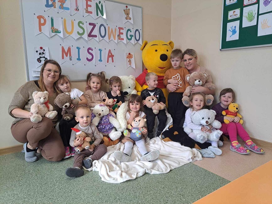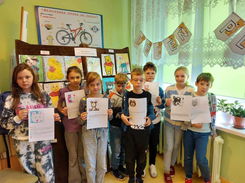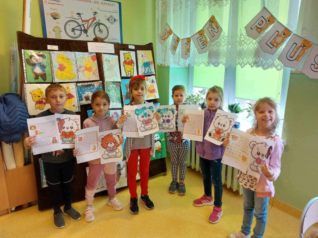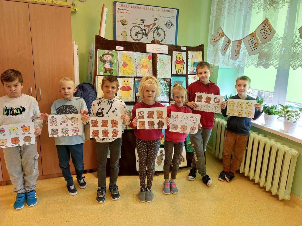 Trudno sobie wyobrazić dzisiejszy świat bez Pluszowego Misia. Jest towarzyszem dzieci i dorosłych w świecie beztroskiej zabawy oraz przyjacielem-powiernikiem największych sekretów i tajemnic. Po raz kolejny postanowiliśmy uczcić to święto w przedszkolu oraz klasach I-III w sposób szczególny. W dniu 24.11.2023r. wszystkie misie i inni pluszowi przyjaciele dzieci, opuścili swoje zaciszne pokoiki i przybyli wraz z uczniami do szkoły na „misiowe przyjęcie”. Celem całego przedsięwzięcia było między innymi: przybliżenie dzieciom w sposób bardzo przystępny historii pluszowego misia, przedstawienie w formie kolorowanek różnych sylwetek misiów, zachęcanie do odwiedzenia biblioteki szkolnej i zgłębiania wiedzy o misiach , książkowych bohaterach.