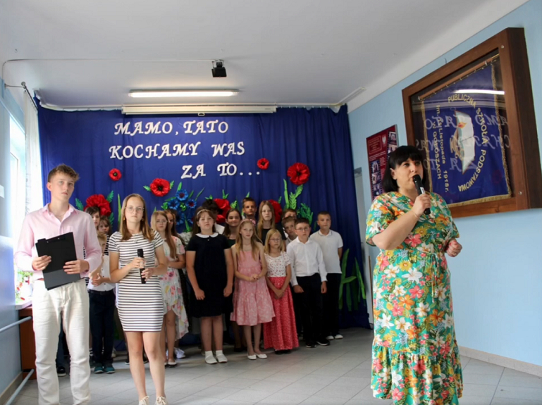 „Mamo,Tato – kochamy Was za to…”- pod takim hasłem dnia 14.06.2024r. odbył się Piknik Rodzinny w Publicznej Szkole Podstawowej im.11 Listopada 1918r. w Gołoszach. Zebranych powitała dyrektor szkoły P. Agnieszka Sikorska. Swoją obecnością zaszczycił nas wójt Gminy Błędów Mirosław Jakubczak, sekretarz Gminy Błędów Jacek Adamski, radny Gminy Błędów Marek Kowalczyk i rodzice.Na szkolnej scenie swoje umiejętności aktorskie zaprezentowały dzieci z zerówki, oddziału przedszkolnego oraz uczniowie klas I-VIII. Było to przedstawienie muzyczne pt. ”Bajkowe życzenia”. Tłumnie przybyli rodzice podziękowali występującym ogromnymi brawami.
