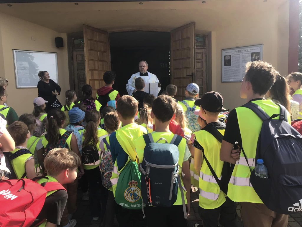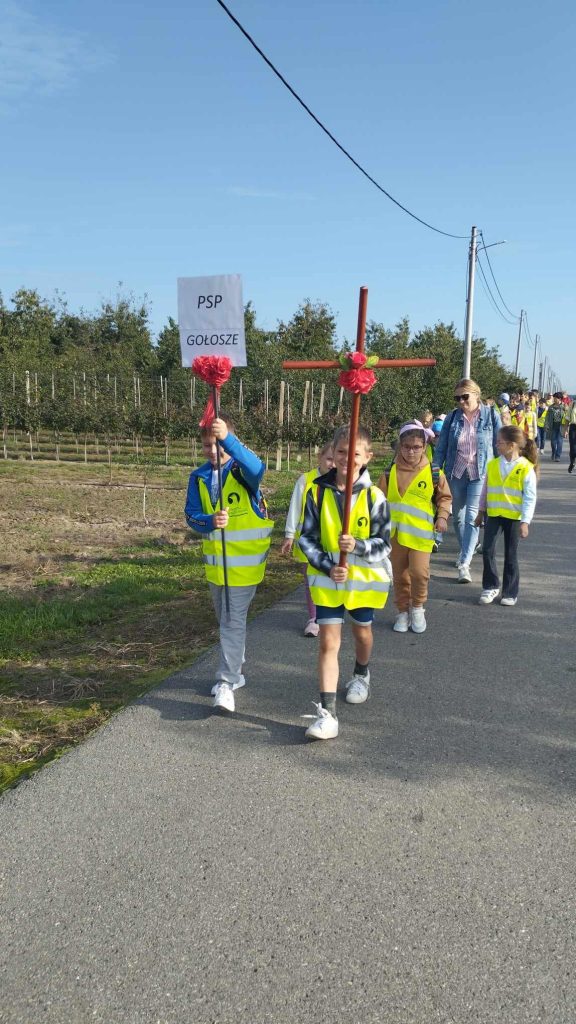 W dniu 19 września 2024 r. odbyła się po raz kolejny Piesza Promienista Pielgrzymka Szkół do Sanktuarium świętego Maksymiliana Marii Kolbego w Szczukach. Uczniowie klas I – VII pod opieką nauczycieli o godz. 8.30 podjęli ze śpiewem i modlitwą trud pielgrzymowania, by o godz. 12:00 wziąć udział w uroczystej mszy świętej koncelebrowanej przez miejscowego proboszcza oraz kapłanów przybyłych z sąsiednich parafii. W tym roku w Szczukach spotkali się na wspólnej modlitwie uczniowie i nauczyciele z siedmiu szkół. Ich przedstawiciele nieśli w procesji wokół kościoła relikwie: św. Jana Pawła II, papieża Jana XXIII, św. Maksymiliana Marii Kolbego, ks. Jerzego Popiełuszki i ks. Stefana Wincenta Frelichowskiego. Po zakończonej mszy świętej odprawianej w intencji pielgrzymów wszyscy udali się na słodki poczęstunek. Nabrawszy sił, dzieci odwiedziły przykościelny sklepik, w którym zakupiły pamiątki. Nauczyciele i uczniowie lekko zmęczeni, ale pokrzepieni mocą Ducha Świętego powrócili bezpiecznie do domów. Dziękujemy organizatorom pielgrzymki za zaproszenie a pielgrzymom za wysiłek i trud.