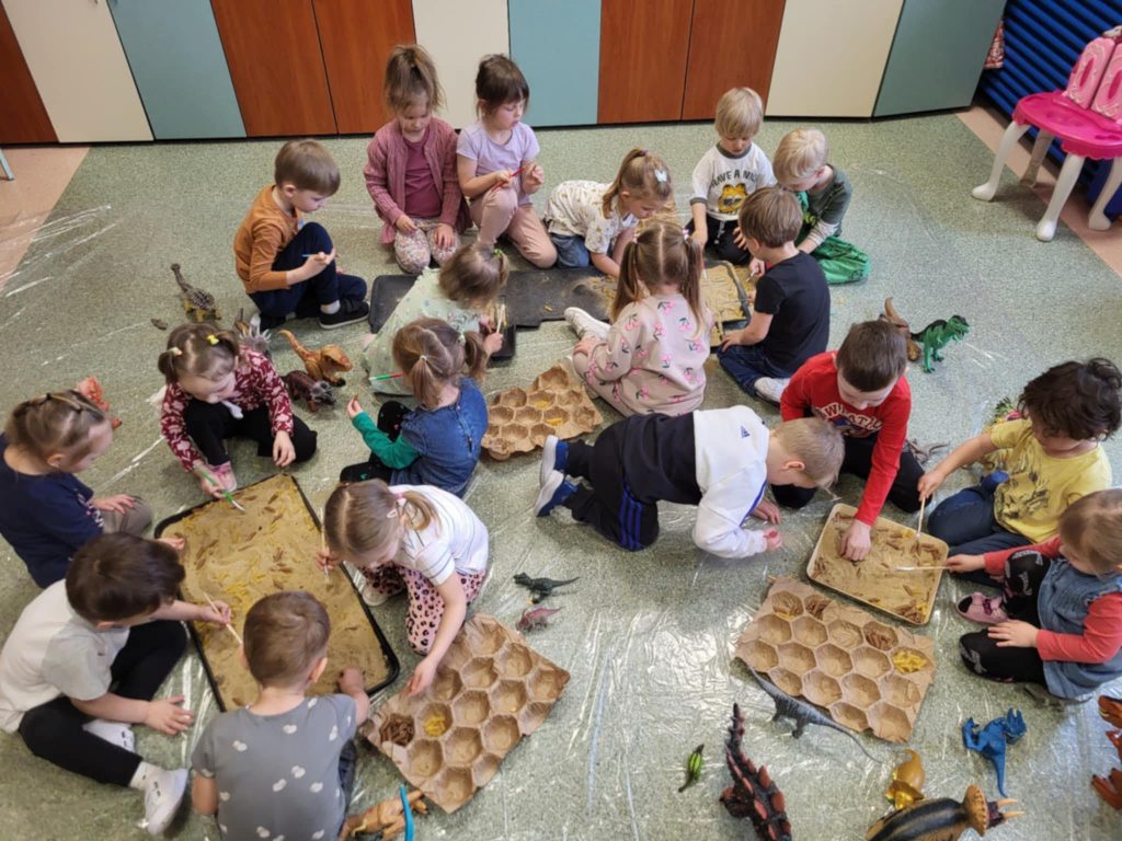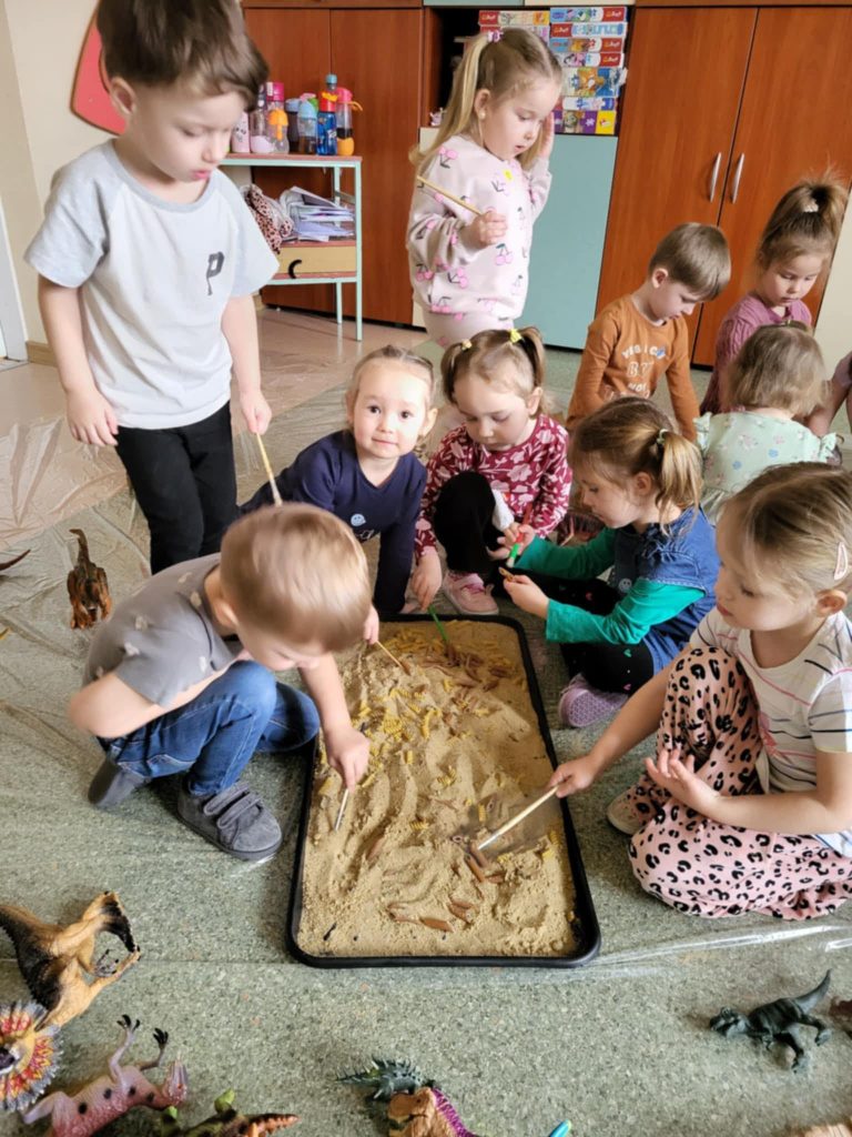 W zeszłym tygodniu maluchy z naszego przedszkola miały okazję stać się paleontologiem. Brały udział w wykopaliskach, poznawały dinozaury, a przy tym fantastycznie się bawiły