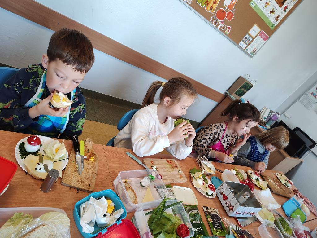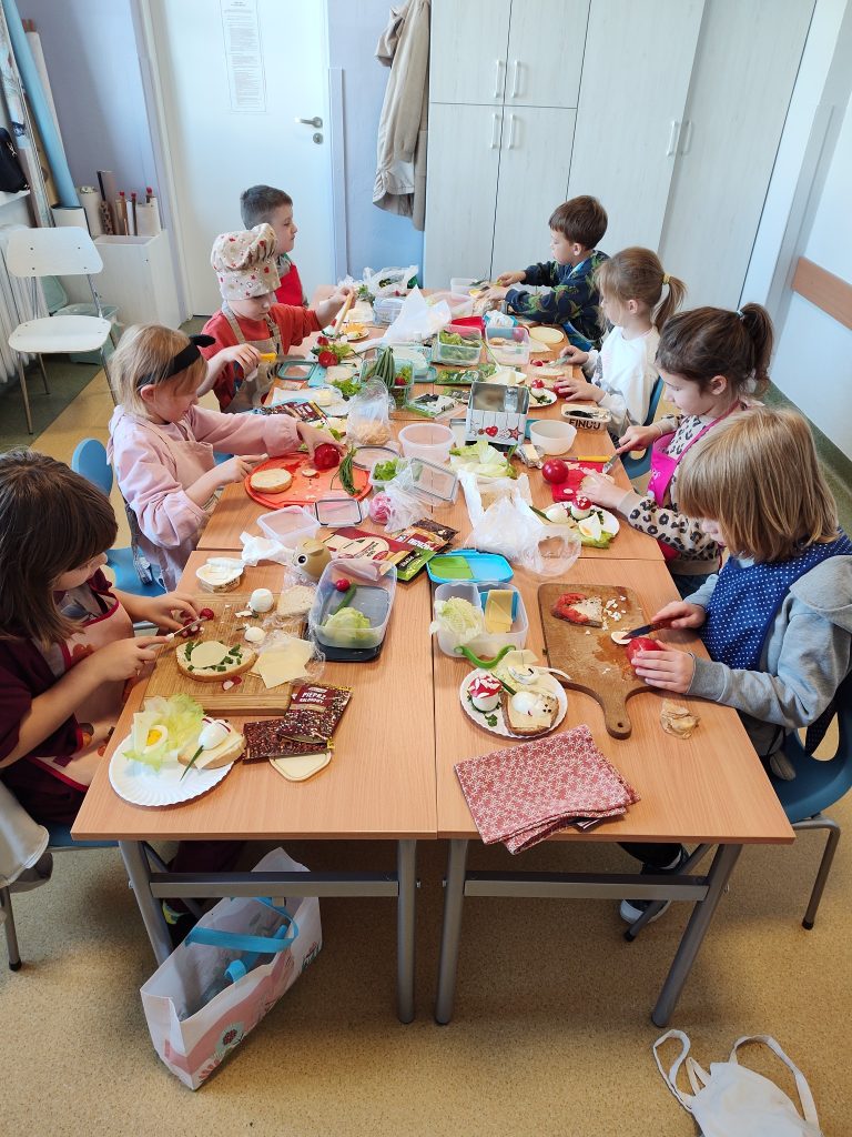 Nasze pierwszaki wzięły udział w zajęciach kulinarnych, podczas których poznawały zasady zdrowego odżywiania i przygotowywały pyszne, kolorowe przysmaki! ![]()